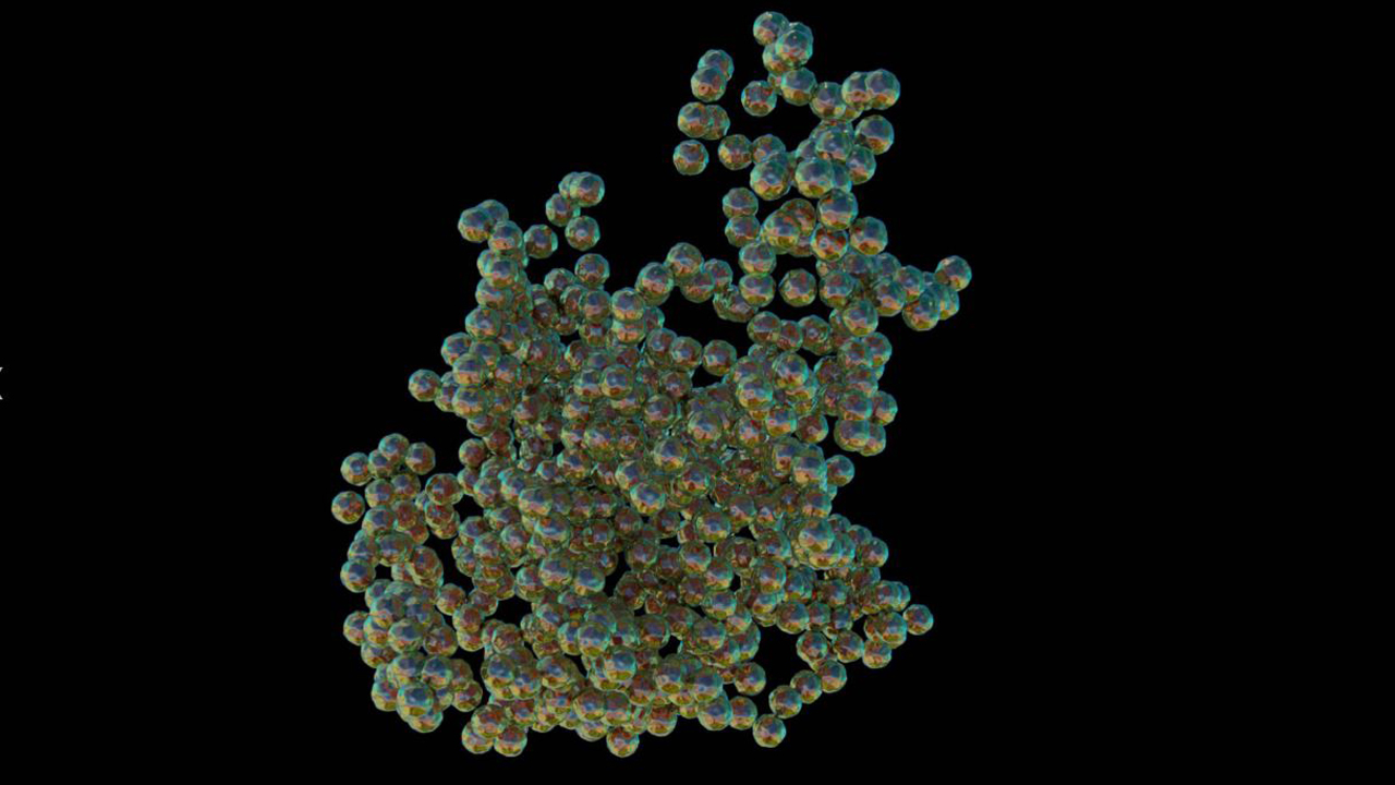 Colonial salp (jellyfish) swimming through the night sea