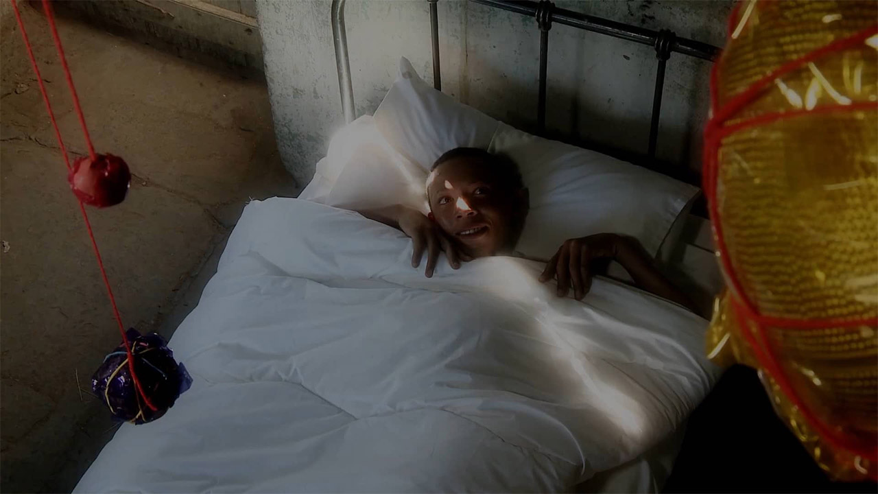 In My Room At the Centre of The Universe and from his small outside room near Sutherland, Elvirdo Booysen begins a process of observation, questioning and discovery, prompted by the death of his grandmother. The film shows the young boy moving out of his room in search of answers. Along the way, he encounters local wisdom-keepers and professional experts who give him new information to work with. He takes this information back to his room, where he makes drawings and models in order to place it within his familiar learning context and through which he continually expands his understanding of himself located within a particular African heritage and simultaneously at the centre of an expanding universe.